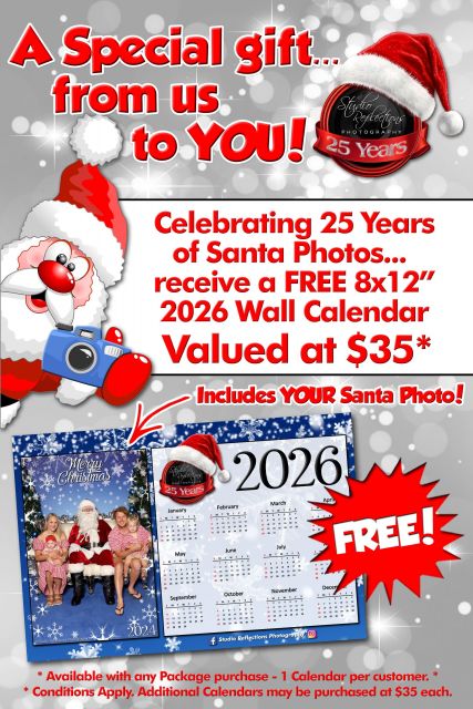 Available for photos right up until Christmas Eve with a special gift for every child, and pet photos too!